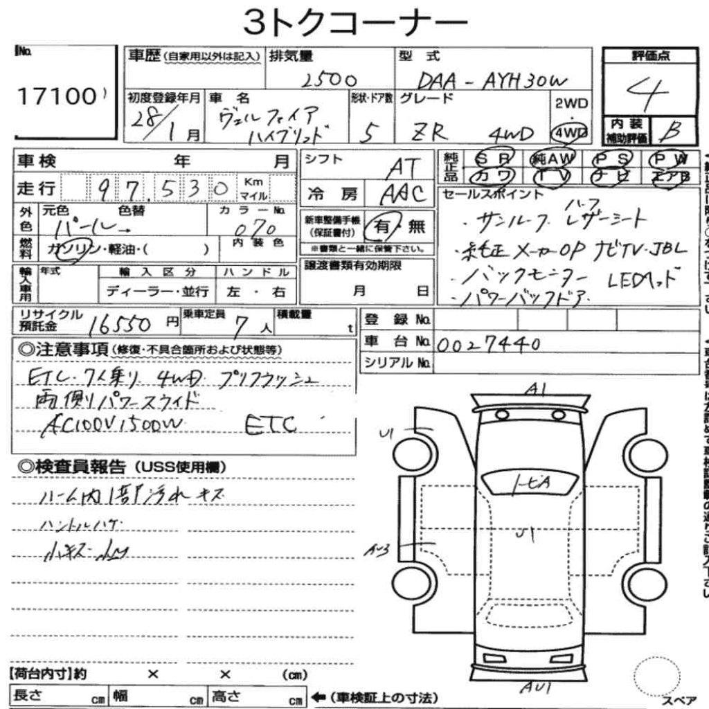 2016 Toyota Vellfire Hybrid 4WD